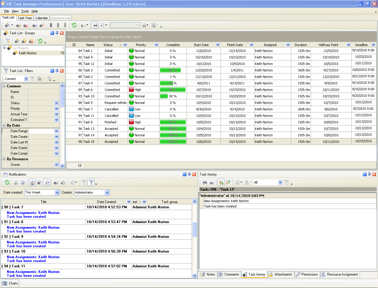 - Task statuses of Custom Workflow 9 on Task List