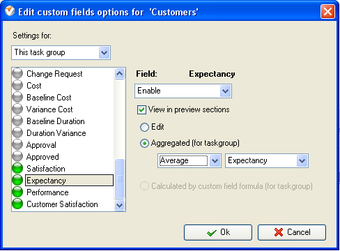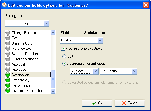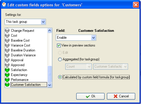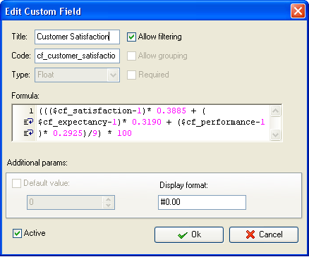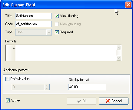 - Select custom field "Customer Satisfaction" and set the following settings for this custom field: