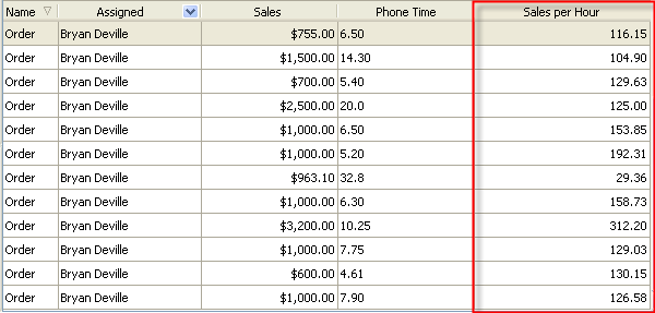 - Add the custom field “Sales per Hour” with Type “Float” and the formula: