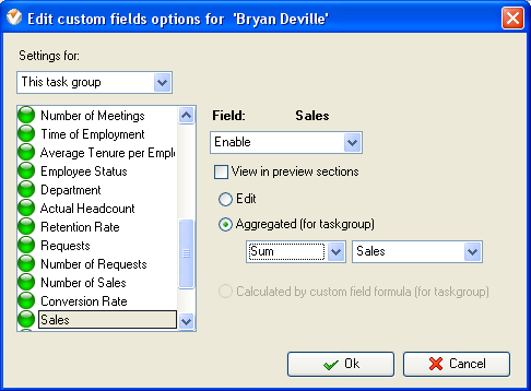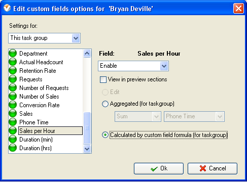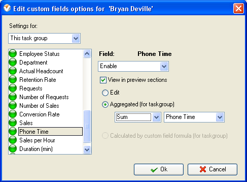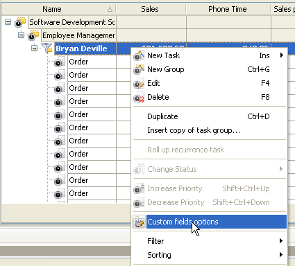 task group for each Call Center Agent, right click and select “Custom fields options”