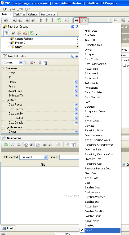 custom fields Date 1 – 10 when you set up VIP Task Manager Professional, you