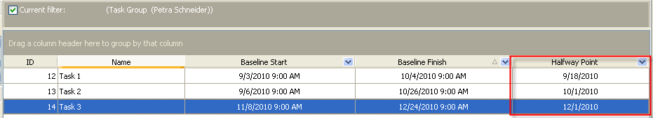 example, you set Baseline Start and Baseline Finish custom fields and you