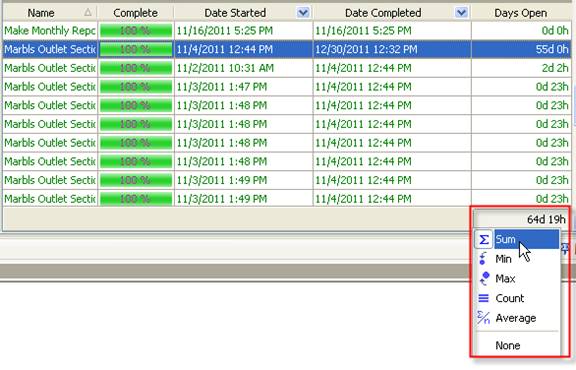 - To see total number of days open right click under column ”Days Open” and select “Sum”