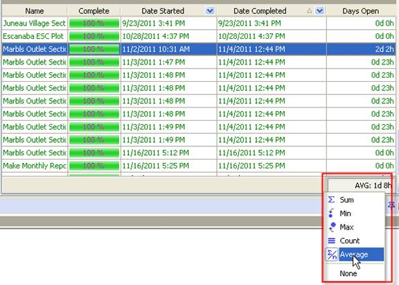 - To see average number of days open select “Average”