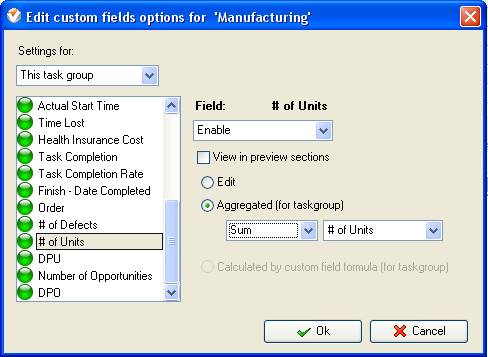 If you would like to calculate Total Number of Units as the sum of all units aggregated per tasks select the custom field “Number of Units” and set the following options: