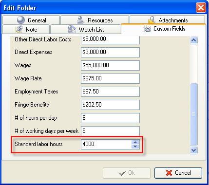 field “Standard labor hours” with Code “cf_standard_labor_hours”
