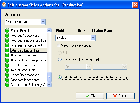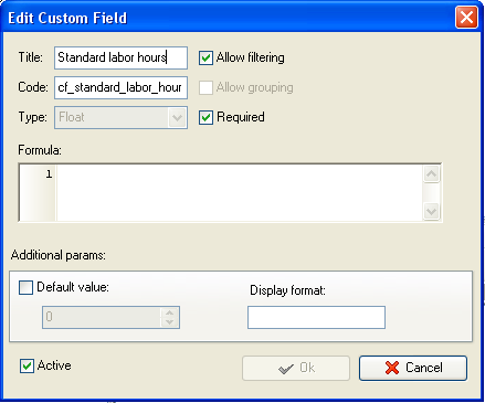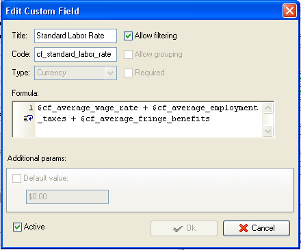 field “Standard Labor Rate” with Code “cf_standard_labor_rate“ and the