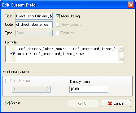 Labor Hours” (used to calculate Actual Labor Cost) with Code “cf_direct_labor_hours”