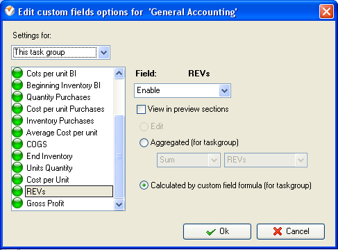 - Select custom field "REVs", "COGS" and "Gross Profit" set the
