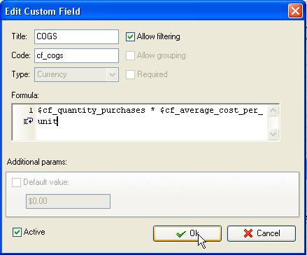 - Create custom field "Cost of Goods Sold". You may use the following