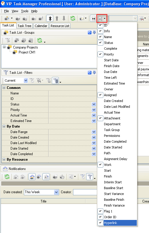 Columns or Task Tree Columns button and check the custom field "Hyperlink"