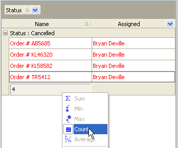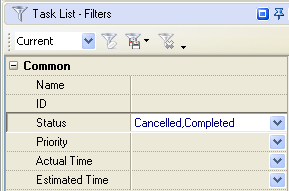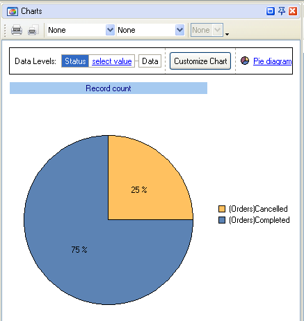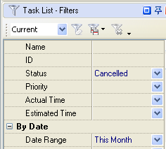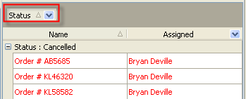 Filters panel and filter tasks associated with orders by status “Cancelled”