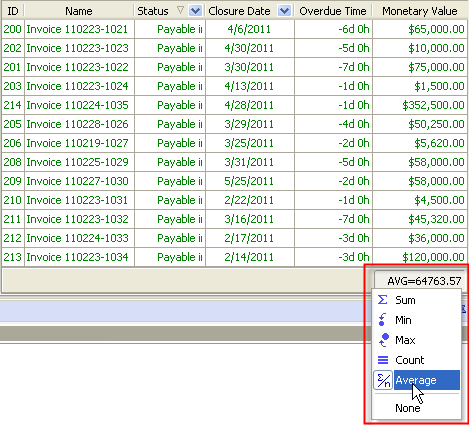 • select "Average" to display average monetary value of overdue invoices