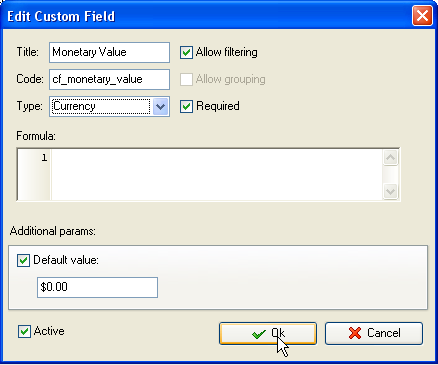 • Create the custom field "Monetary Value":