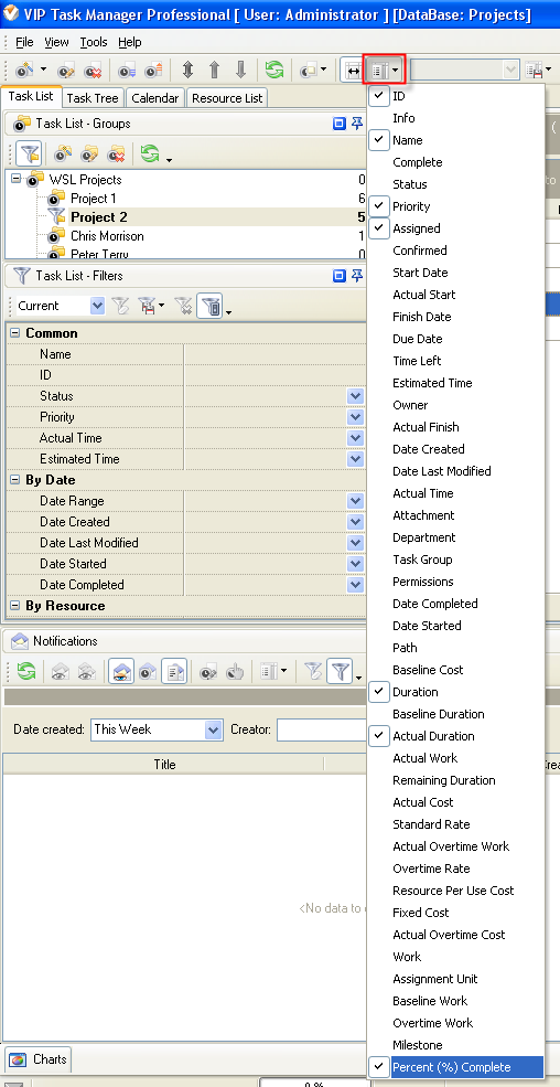 7. to display the value of custom field Percent (%) Complete on Task List or Task Tree please go to Task List or Task