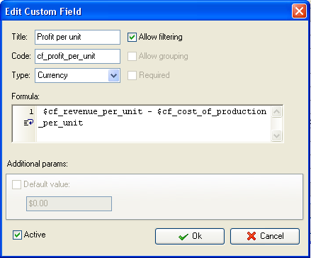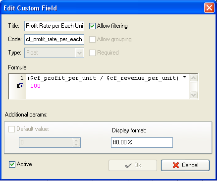 custom field "Profit per unit" with Code "cf_profit_per_unit" the formula: