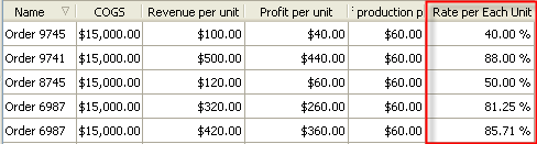 custom field "Profit Rate per Each Unit Sold" with the formula: