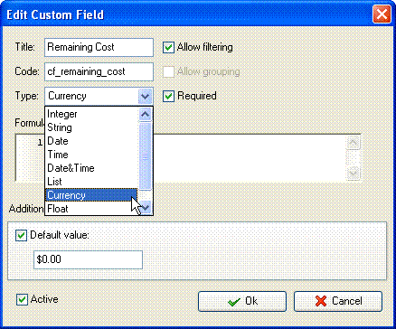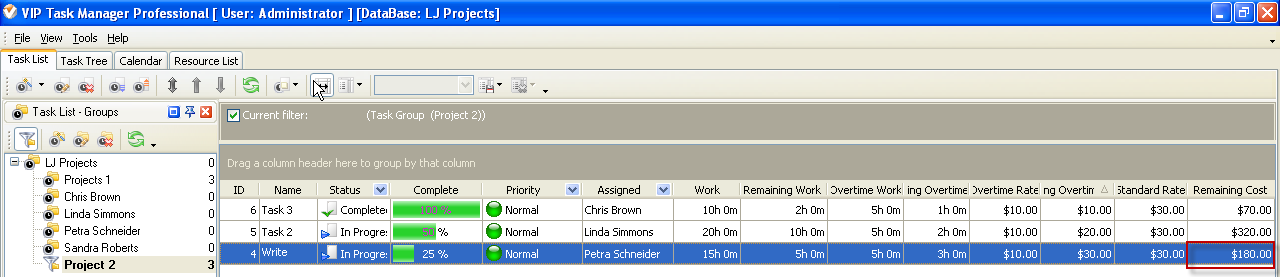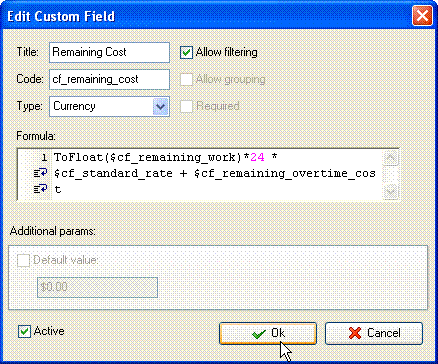 VIP Task Manager Professional automatically calculates Remaining Cost by the following formula: