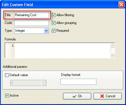 3. in "Title" field enter "Remaining Cost"