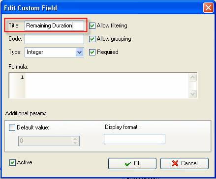 - in "Title" field enter "Remaining Duration"