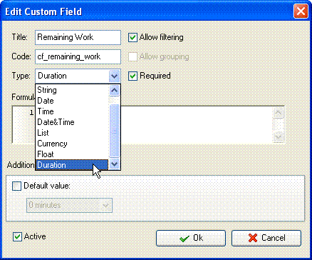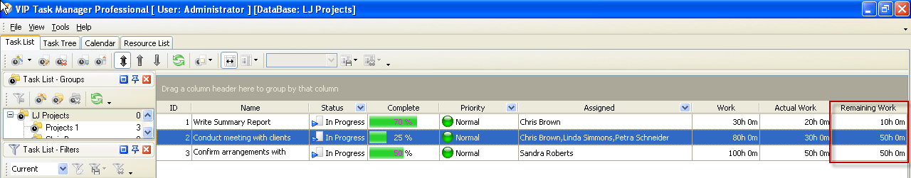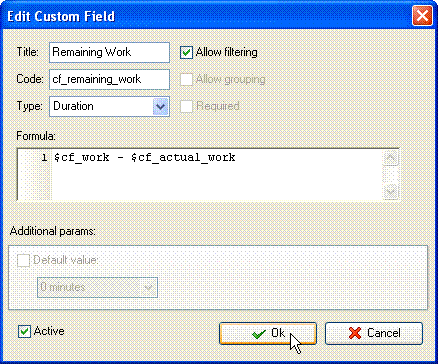 Once you enter the values for Work and Actual Work custom fields VIP Task Manager Professional automatically calculates Remaining Work by the following formula: