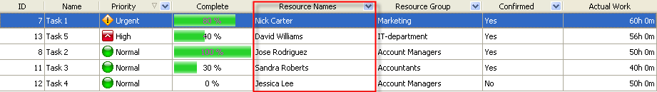 Task Tree, click Task List Columns or Task Tree Columns button and check the custom field "Resource