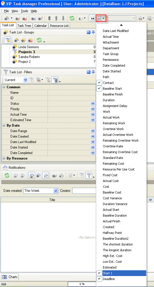fields Start 1–10 when you set up VIP Task Manager Professional and Baseline