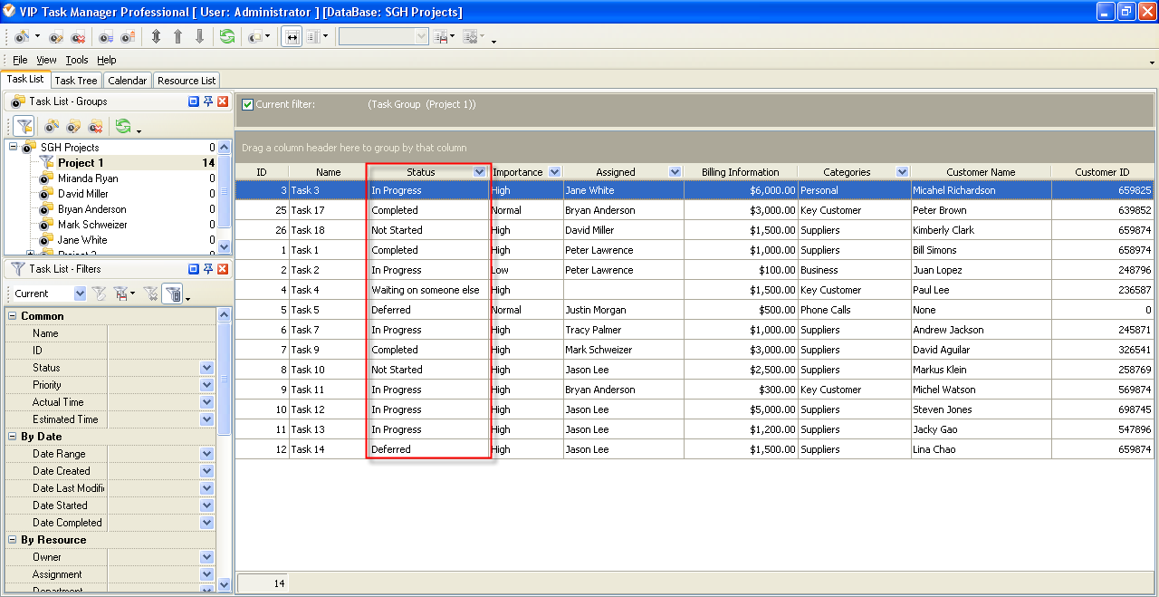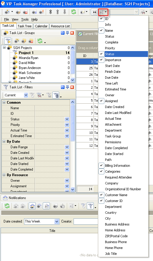 6. to display the value of custom field Status or Task Tree please go to Task List or Task Tree, click Task List Columns or Task