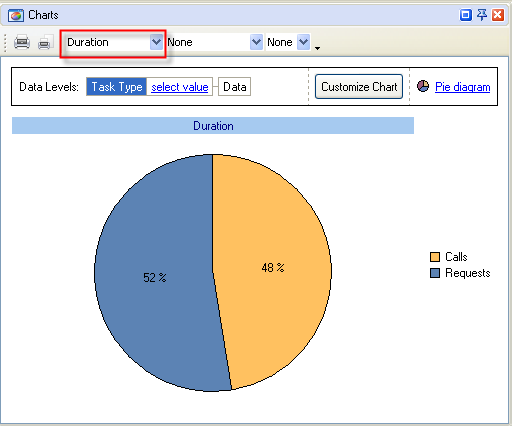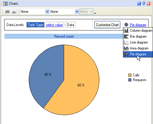 available types of tasks, for example, Calls, go to Charts panel and select "Pie
