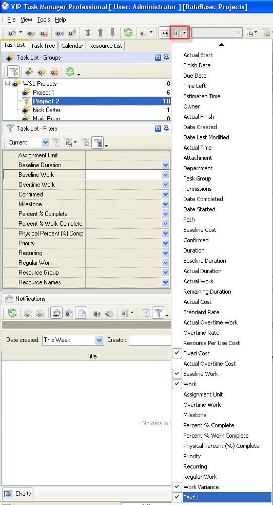 Task List or Task Tree, click Task List Columns or Task Tree Columns