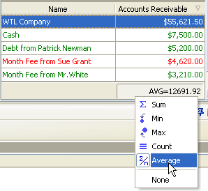 - To enable the displaying of the total or average accounts receivable select custom field "Accounts Receivable" and do the following: