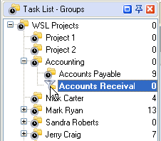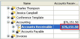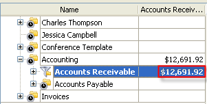 Total Accounts Receivable per project on Task Tree