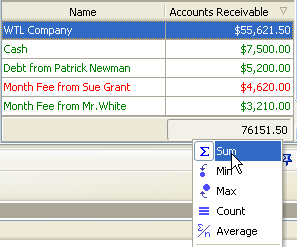 - select "Sum" to display total amount of accounts receivable