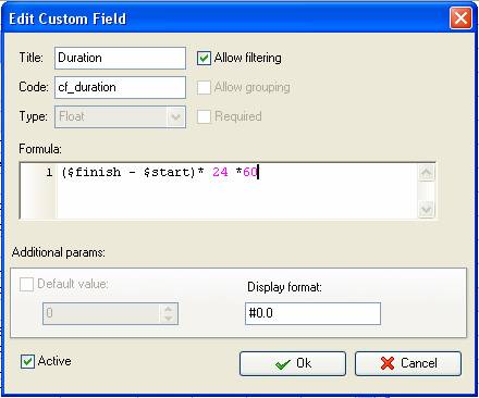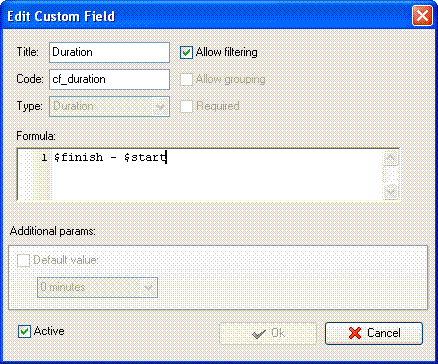 for the custom field “Duration”