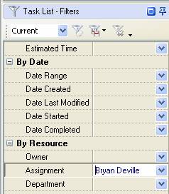 “Assignment” on Task List –Filters panel
