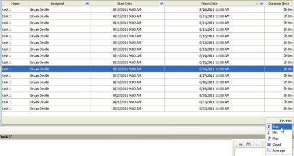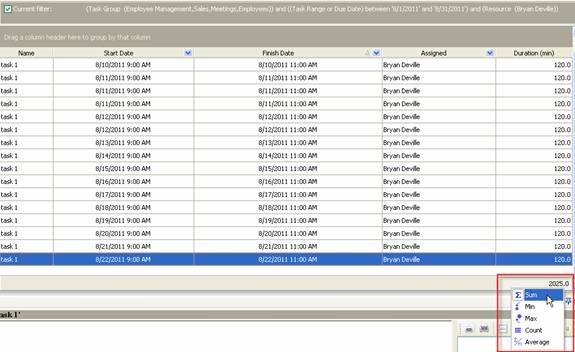 - select “Sum” to display total duration of