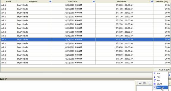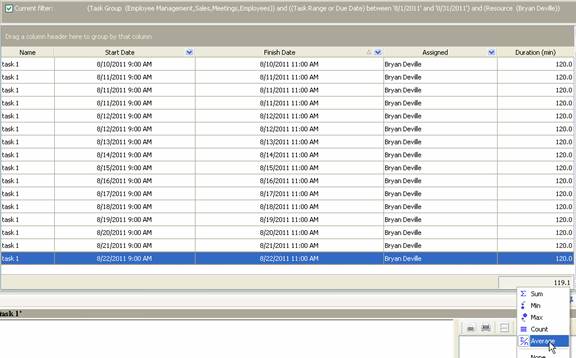 - select “Average” to display average duration of tasks per