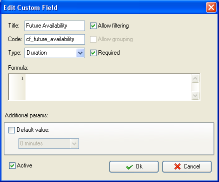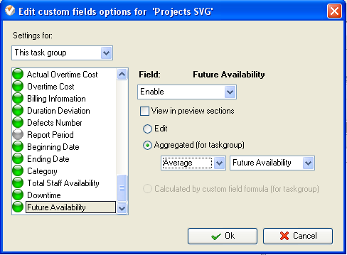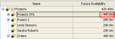 - to display the average future availability hours for projects select "Average" and the custom field name "Future Availability"