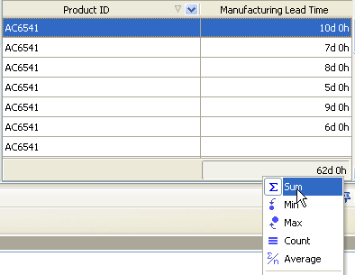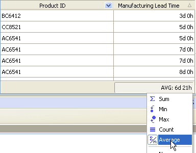 - Set footer to display the total or average manufacturing lead time of products provided:
