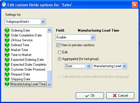 - Select task group for which you need to view the total or average manufacturing lead time of products, right click and select “Custom fields options”