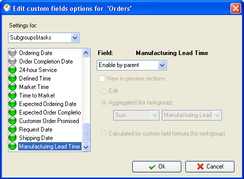 - Select custom field “Manufacturing Lead Time” and select the option “Enable by parent”.