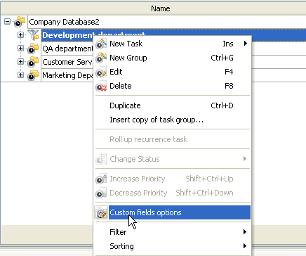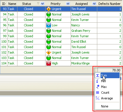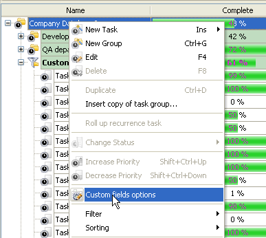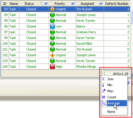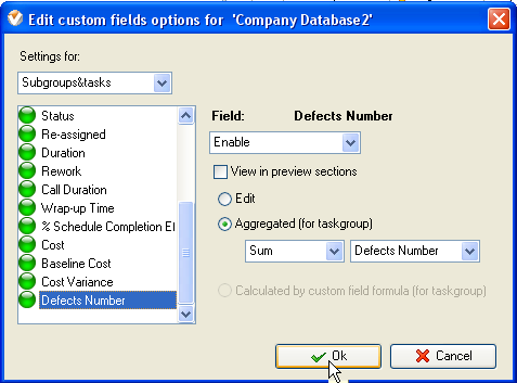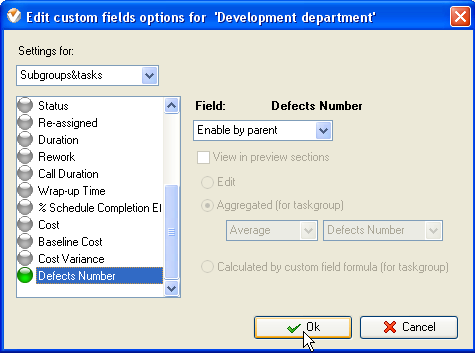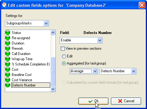 task group for which you need to view the total or average number of defects, right click and select "Custom fields