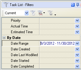 filters on Task List – Filters panel