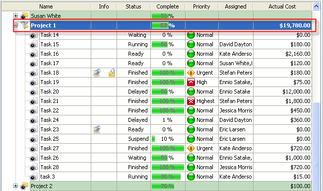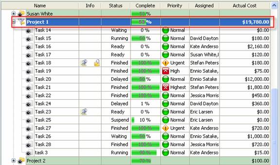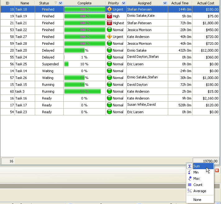 that shows the total amount spent on task. Total costs of tasks is the sum of task fixed