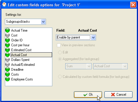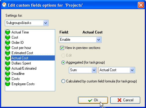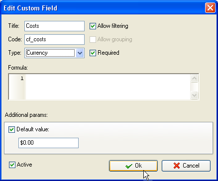 group select custom field "Actual Cost", "Cost" or "Costs"