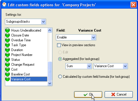 - - select custom field name "Cost Variance"