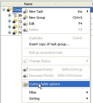 the root or parent task group and click "Custom fields options"