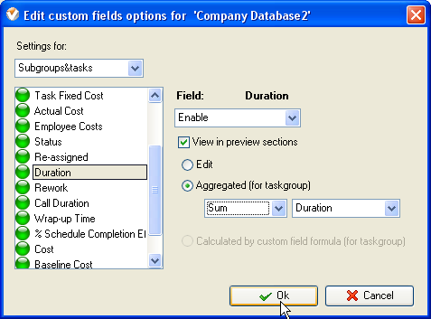 or minimum duration of projects select "Max" or "Min" and the custom field name