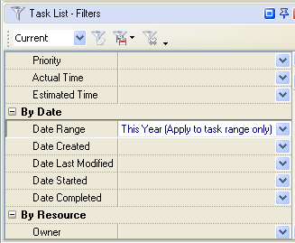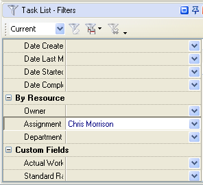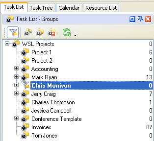 - Set filter on Task List– Filters panel by