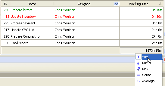 - right click under column “Working Hours”